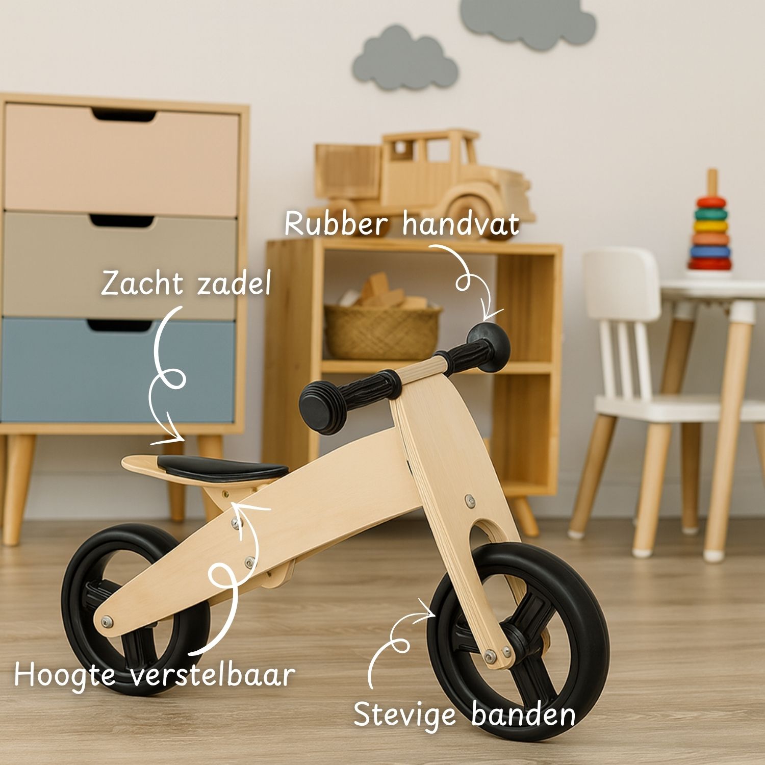 Voor deze houten loopfiets geldt: Uit voorraad geleverd, vóór 20:00 besteld = morgen in huis! Wordt gratis bij jou thuis geleverd. Niet goed, geld terug!