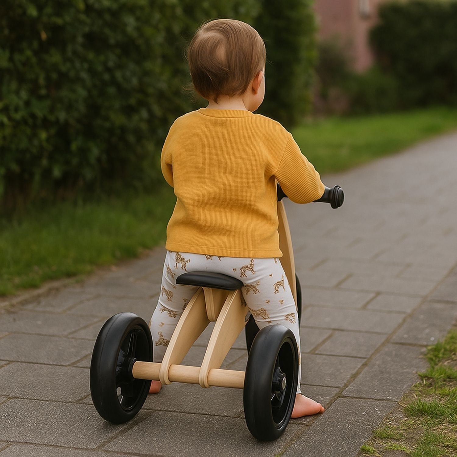 Het fietsje is zowel een driewieler als een tweewielige loopfiets. Wanneer kinderen er klaar voor zijn, is dit de kleinste loopfiets op de markt - geschikt voor kinderen van 12 tot 24 maanden. Met een verstelbare zithoogte van 21,5-28 centimeter en een draagvermogen van 25 kg, zorgt het comfortabele en hippe ontwerp ervoor dat peuters veilig en onbevreesd kunnen rijden.
