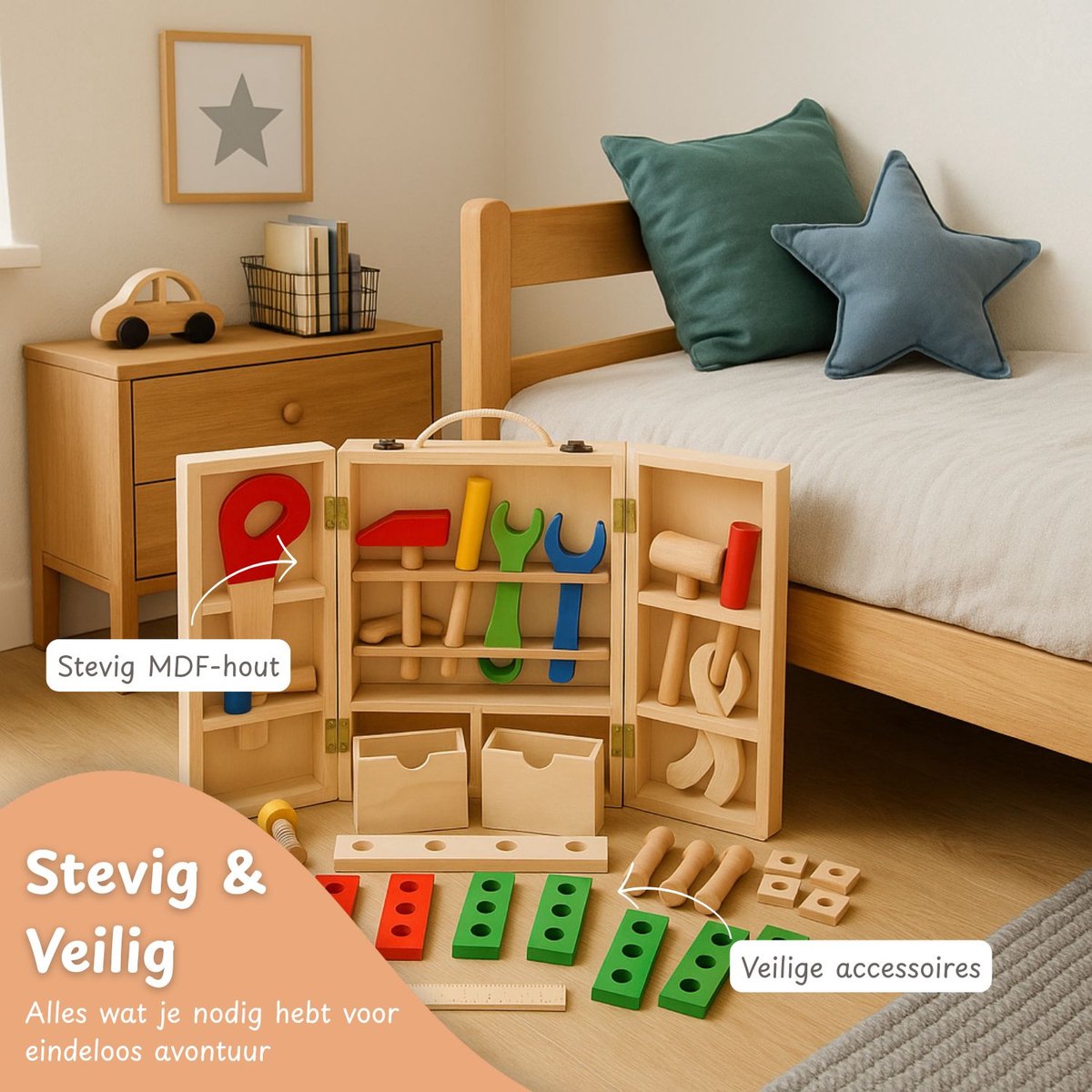 • Veilig en duurzaam: Gemaakt van hoogwaardig hout met afgeronde randen en niet-giftige verf.
